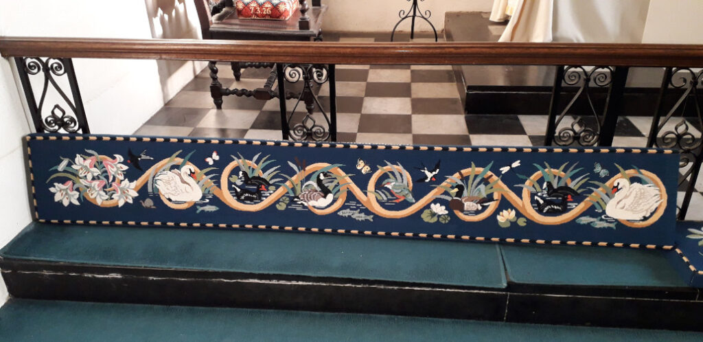 Many years ago, when Stephen and Christine Rowe were ministers at St John’s, a project was begun to create some embroidered kneelers for the altar rail step that reflected the beauty and character of Caversham and honoured the Lord’s goodness to us. For various reasons the project stalled, but in Febuary 2018 St John’s Church Leadership Team decided the project should be completed. Under the leadership of Pat Jones, a small team of embroiderers have completed the kneelers, and they look fantastic! We are also very grateful for a donation received towards the cost.