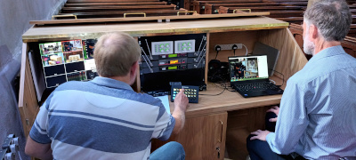 In July last year we ventured back into church for our Sunday service for the first time since March 2020. Although the new system was still a long way off, we knew we had to continue streaming. So with our newly installed broadband we were able to live stream the service using a laptop and an iPad. We could even accommodate remote intercessions and readings by holding a microphone to the laptop speaker! This led to some awkward moments for our faithful team of streamers, but mostly it worked – after a fashion.
